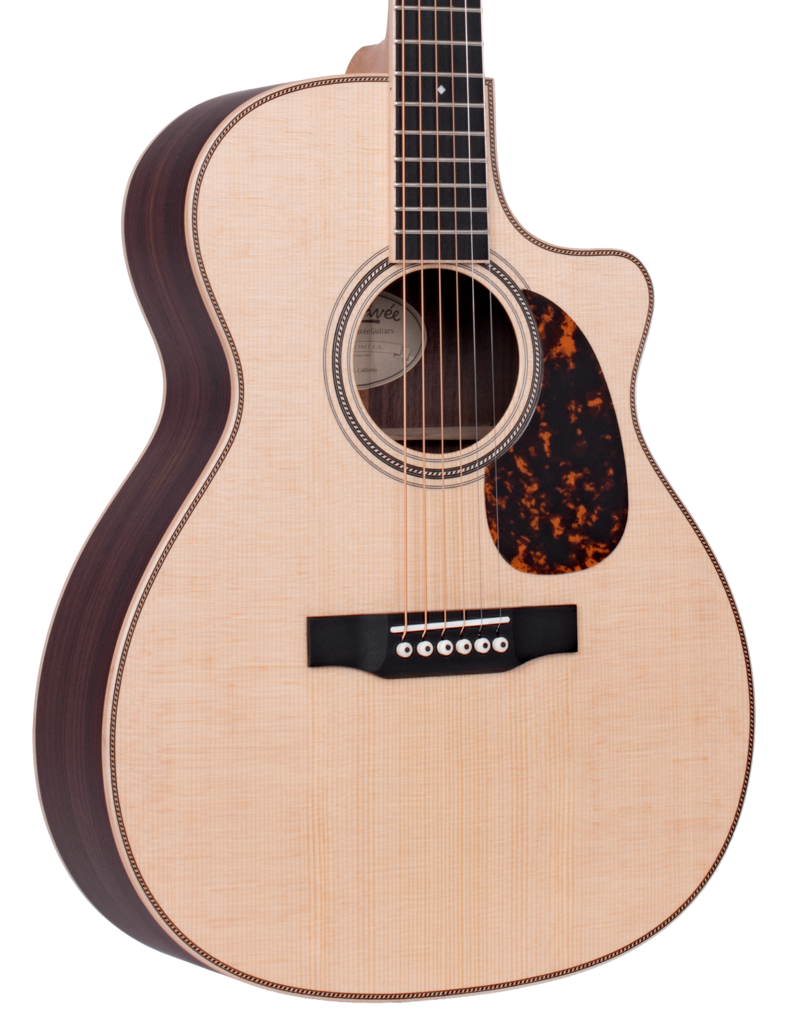 Our 40 Legacy Series models are meticulously crafted using all-solid African Khaya mahogany or East Indian rosewood back and sides. We have paired these tonewoods with exceptional BC Sitka spruce tops, employing our scalloped hybrid bracing to achieve a dynamic response across the soundboard.