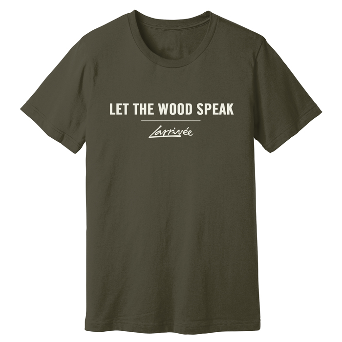 Our hunter green "Let The Wood Speak" t-shirt is a tribute to the raw, resonant beauty at the heart of every Larrivée guitar. True sound begins with exceptional tonewood-and the patience to let it sing. Printed on premium Bella Canvas 4.2-ounce, 100% Airlume combed and ring spun cotton.